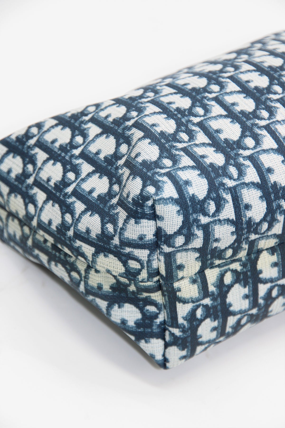 Embrace vintage elegance with the Dior Diorissimo Top Handle Bag from the 2002 collection by John Galliano. Featuring the iconic Diorissimo pattern in a rich blue hue, this bag is accented with gold-tone hardware and refined leather trim embellishments. The flat handle offers comfortable carrying, while the nylon lining and single interior pocket keep your essentials organized. A secure zip closure at the top ensures your belongings stay protected. Perfect for adding a timeless touch to any ensemble.