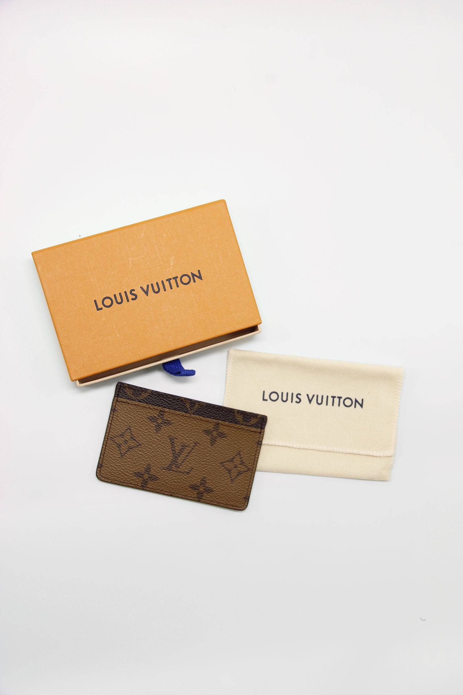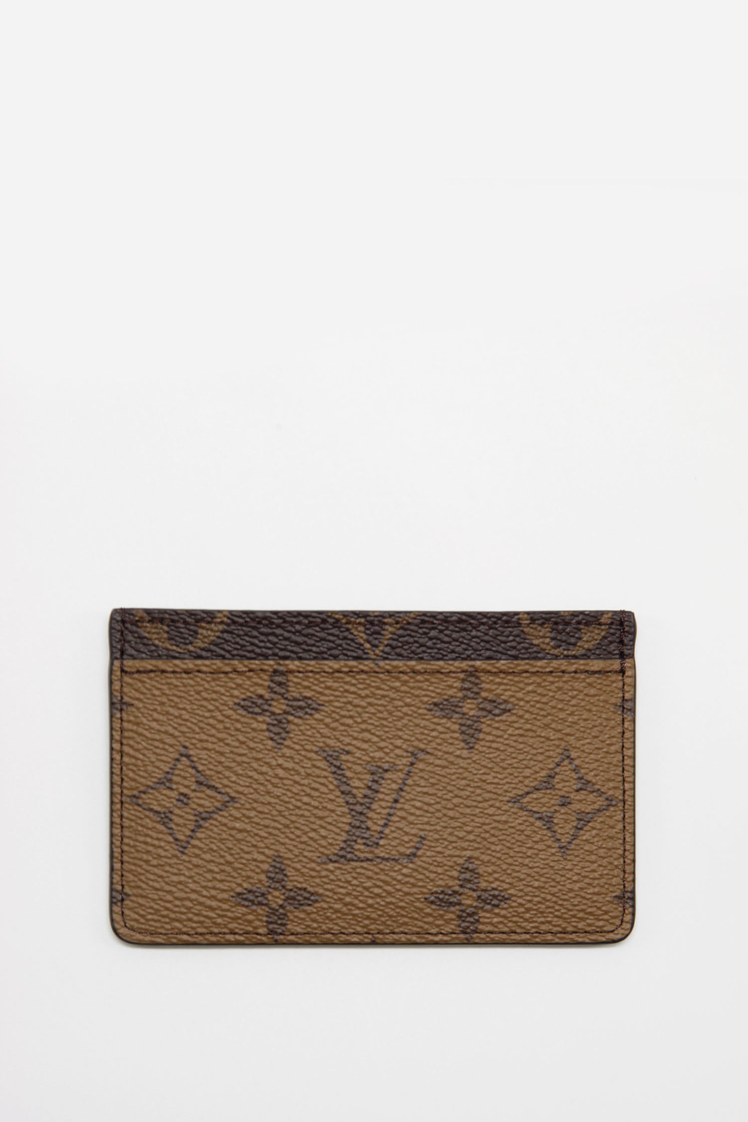 Add a touch of luxury to your everyday style with the Louis Vuitton Monogram Reverse Card Case. Crafted from brown coated canvas, this card case features the iconic Monogram Reverse pattern and a leather lining with card slots for convenience. Includes box and dust bag.