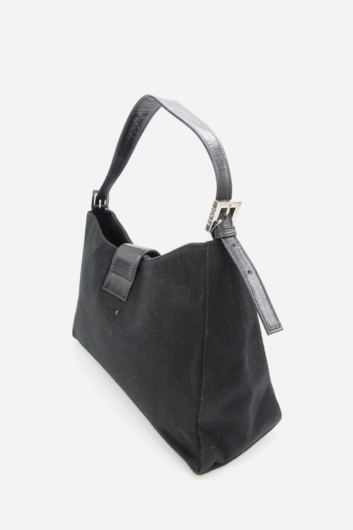 This Vintage Fendi Shoulder Bag gives practicality and style with signature flair. Crafted with durable material, it features with leather trim and a single interior pocket. Silver-tone hardware and nylon lining round off the design, while the snap closure at front adds extra detail.